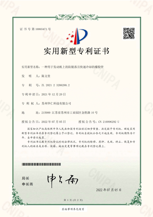 一种用于发动机上的防脱落且快速冷却的橡胶管